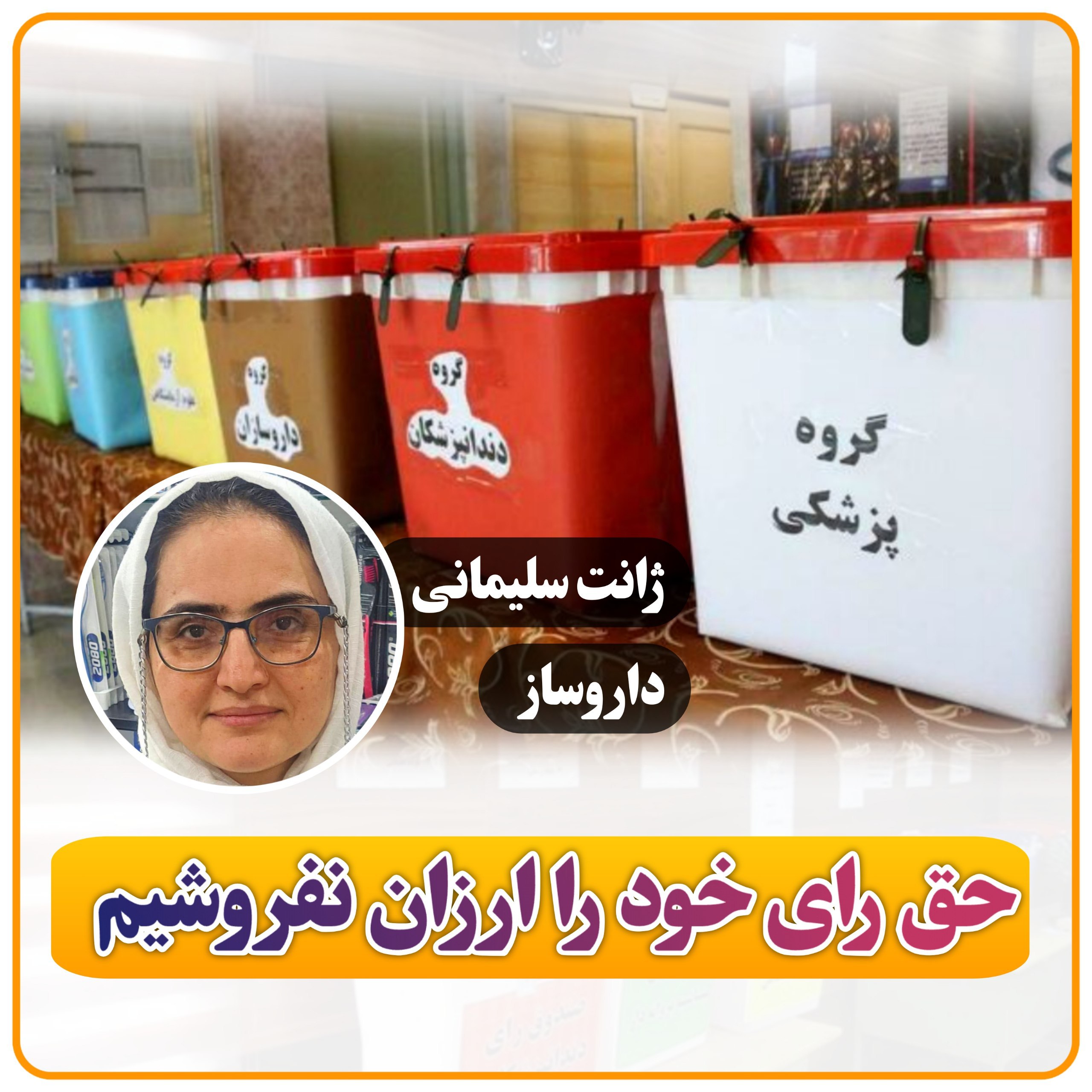 بیایید ‌نشان دهیم که ما داروسازان نسبت به سرنوشت خود بی‌تفاوت نیستیم و حق رای خود را ارزان نمی‌فروشیم.