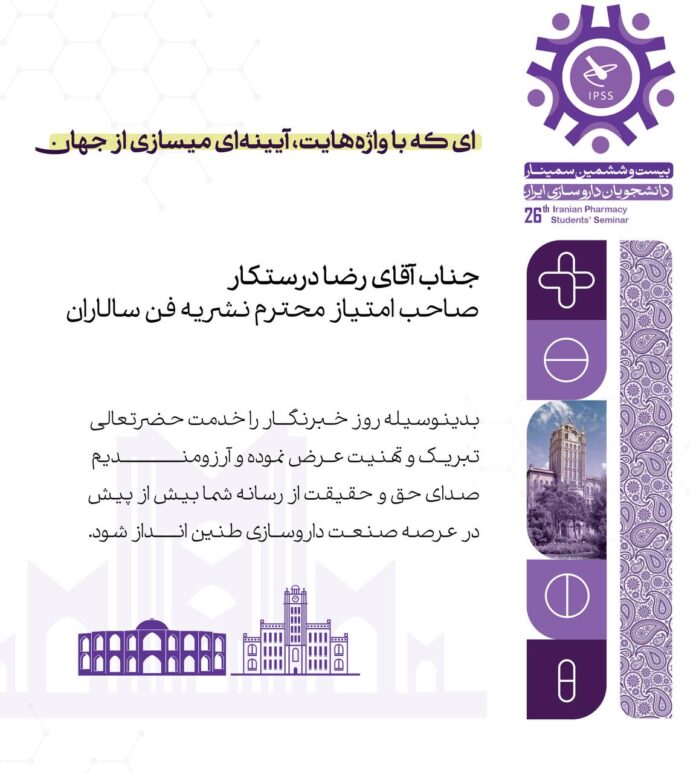 اما یکی از بهترین این تبریکها را از طرف مسئولان «سمینار دانشجویان داروسازی ایران» دریافت کردیم. غیرمنتظرهترین بهیادی بود که دریافت کردیم و دمشان گرم.